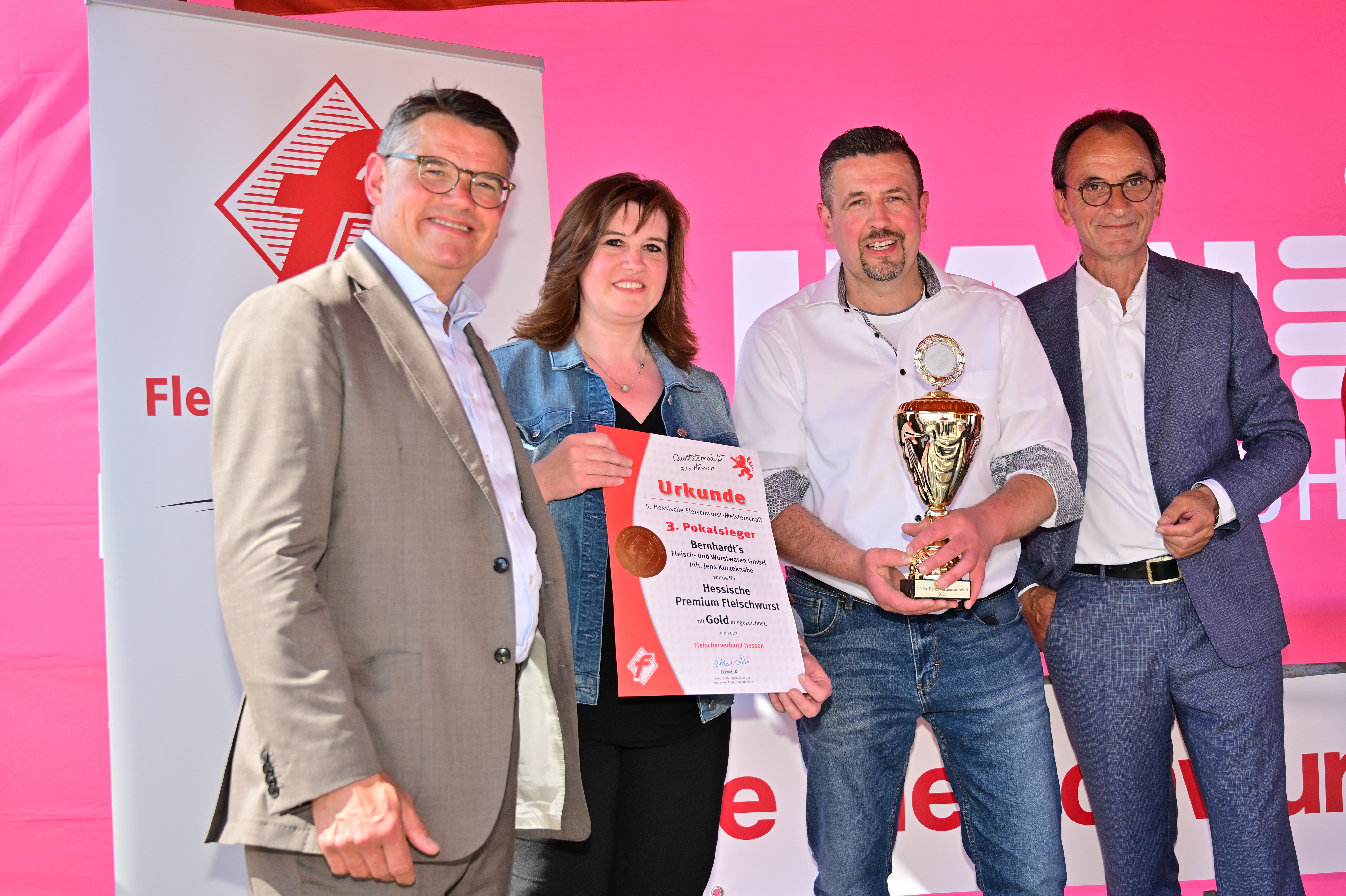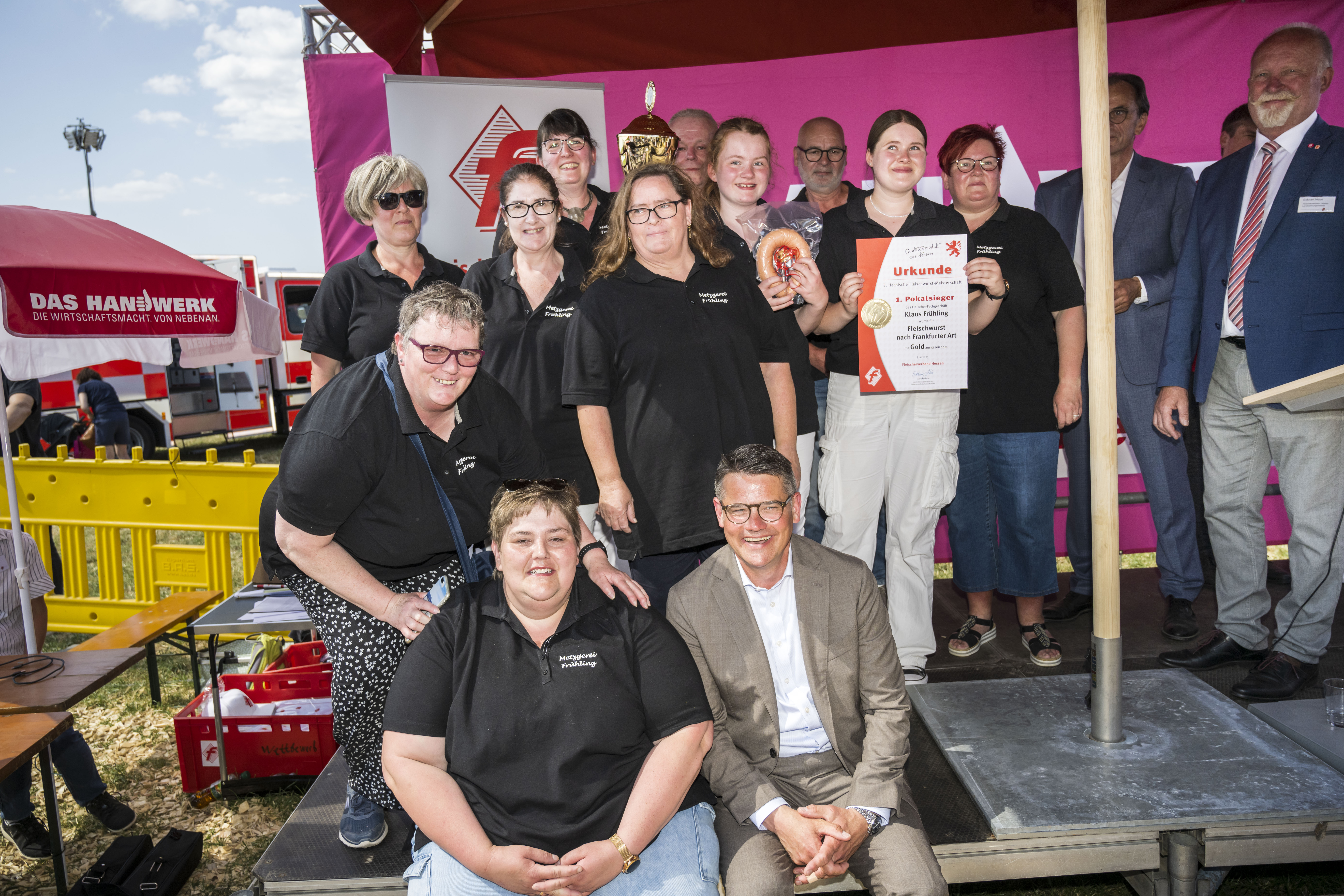 Ministerpräsident Boris Rhein mit den Siegern der 5. Hessischen Fleischwurstmeisterschaft.