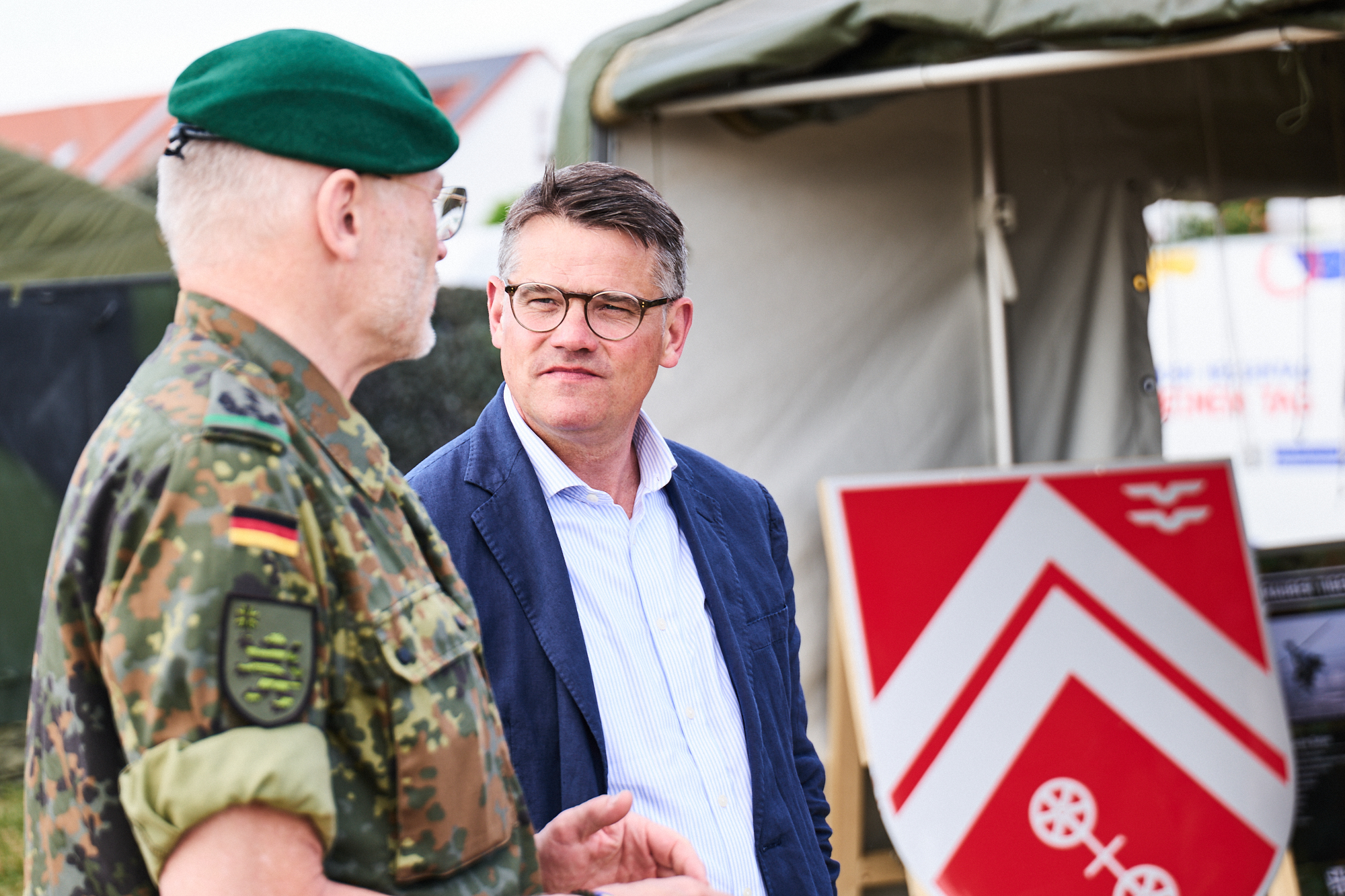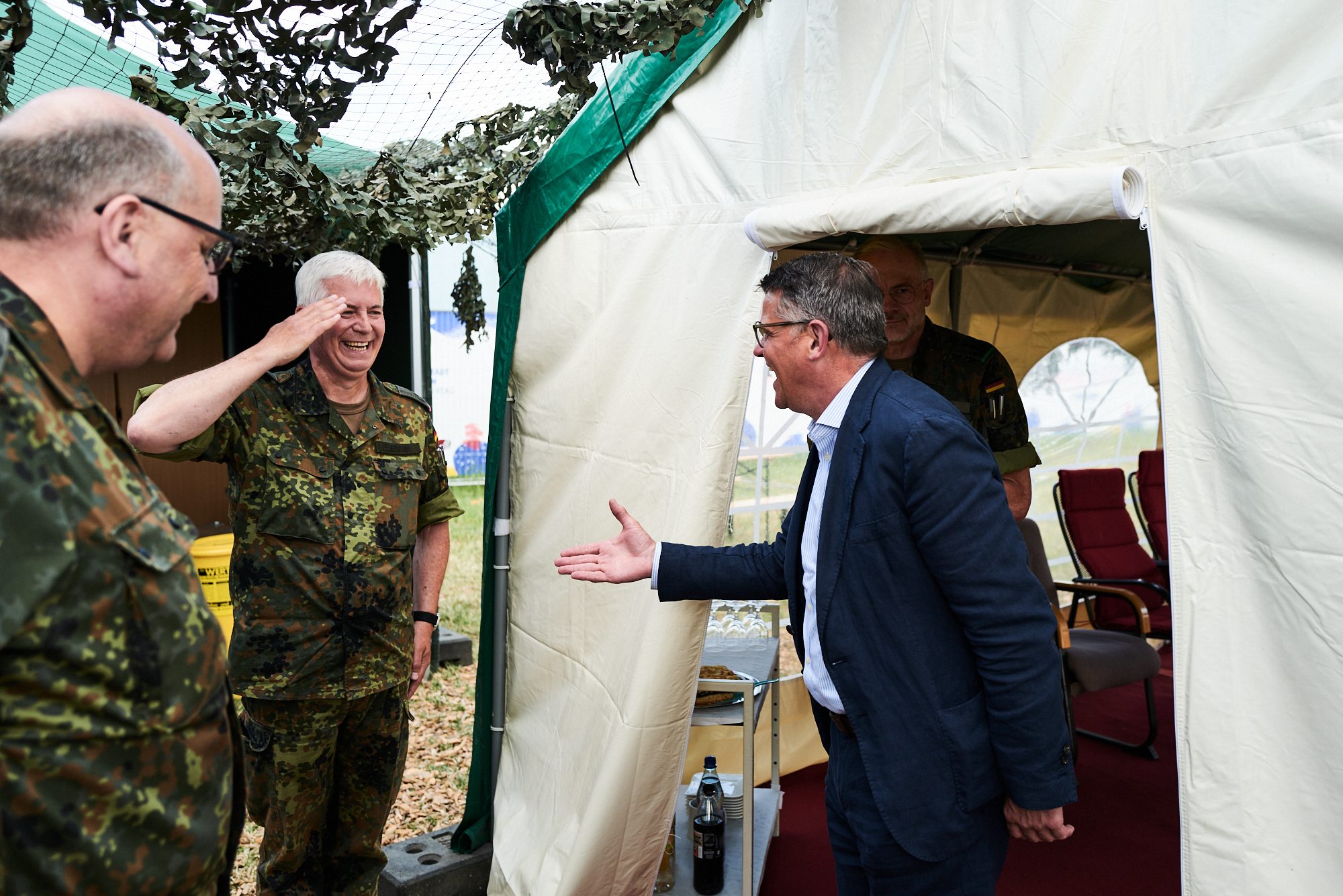 So wie Ministerpräsident Boris Rhein auf seinem Rundgang können sich auch die Besucherinnen und Besucher des Hessentags über die Bundeswehr informieren.