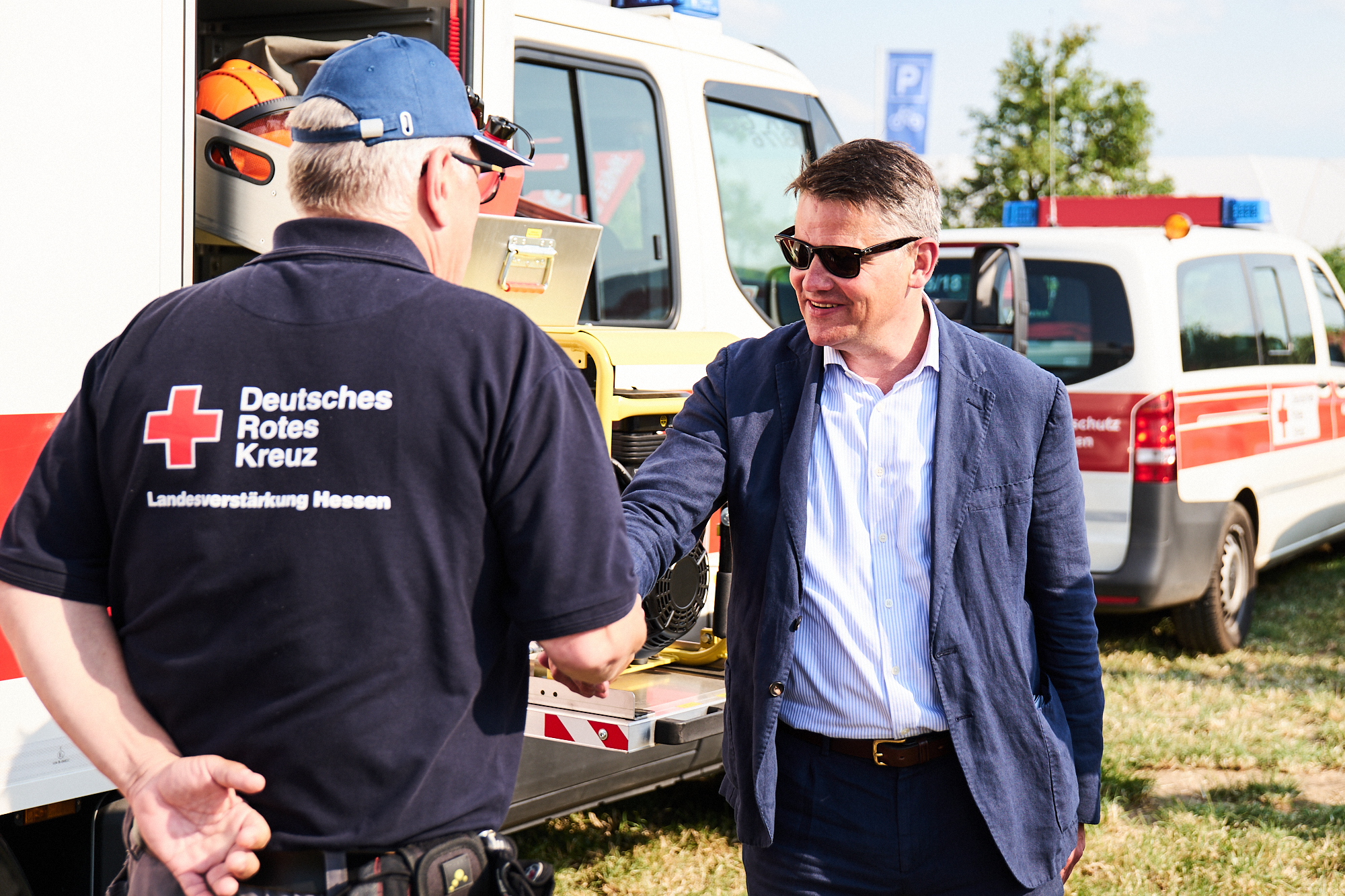 Am selben Tag hat Ministerpräsident Boris Rhein auch den Platz der Hilfsorganisationen besucht.