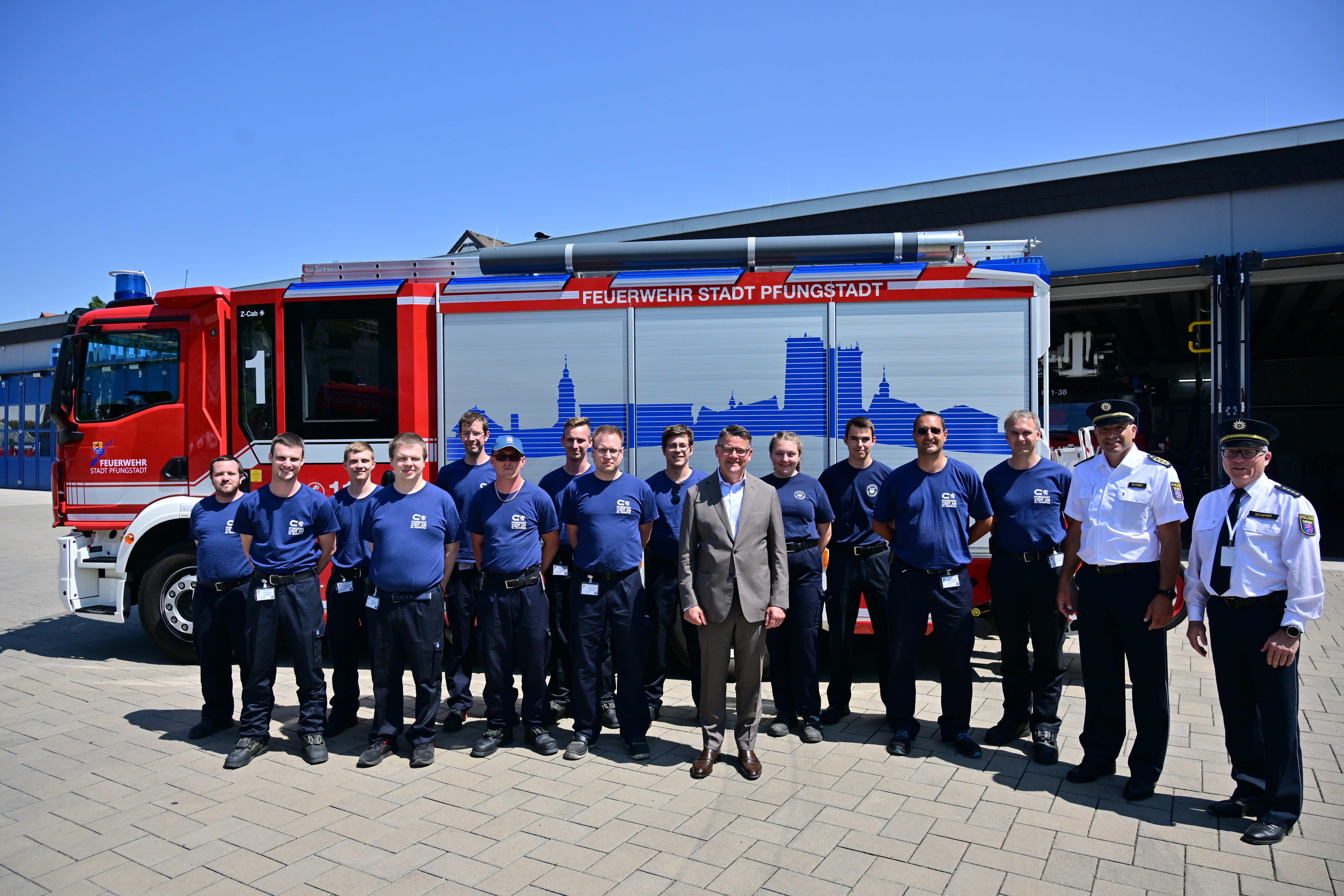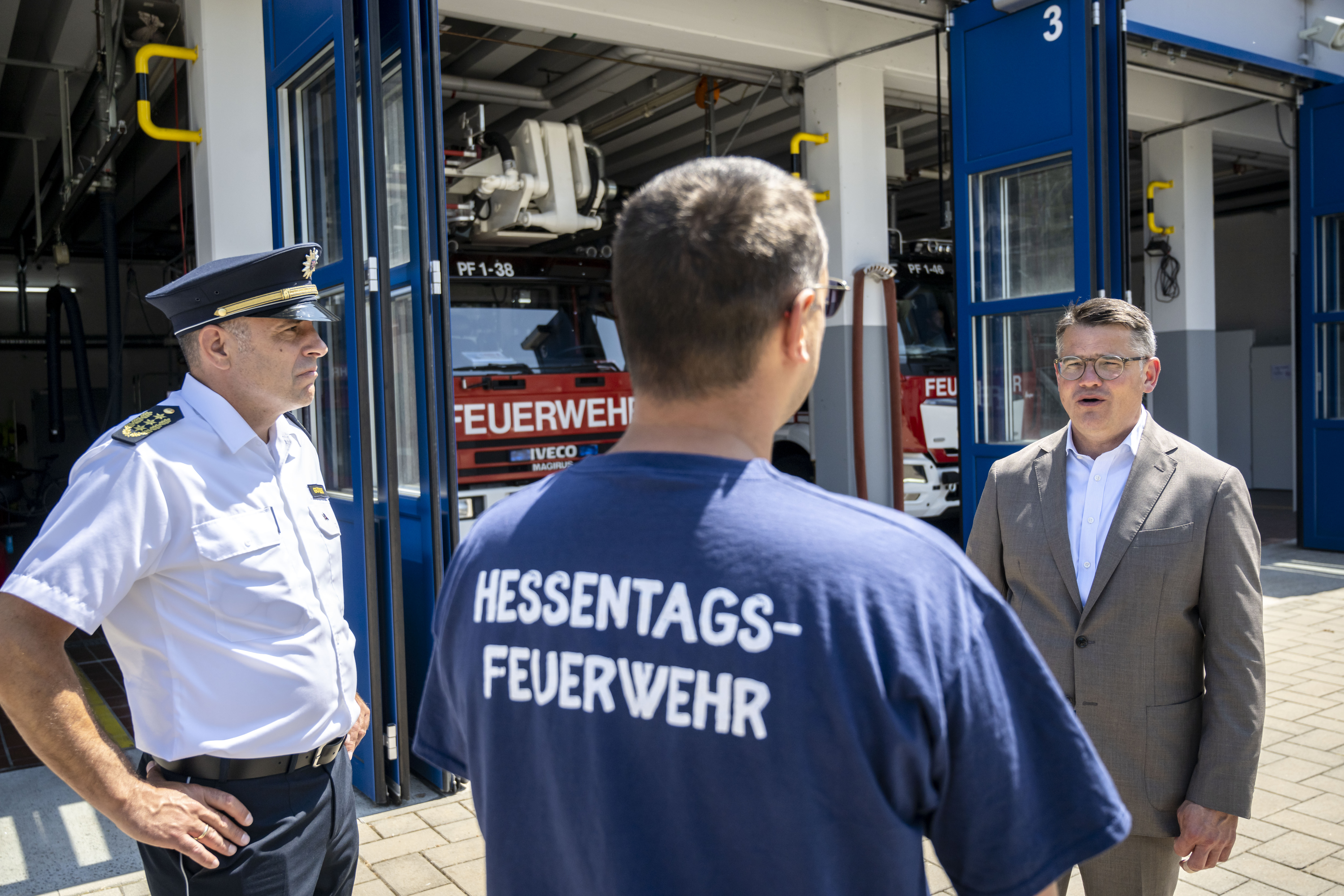 Ministerpräsident Boris Rhein mit Einsatzkräften.