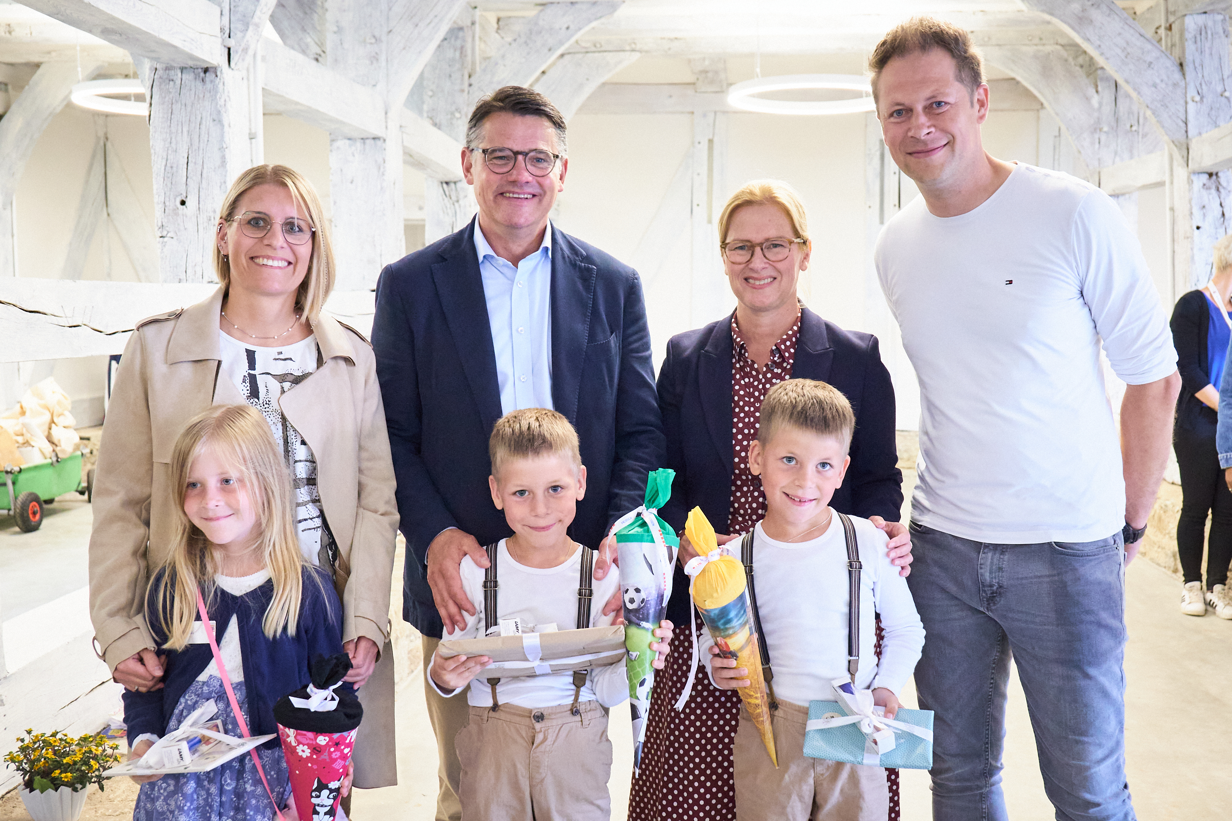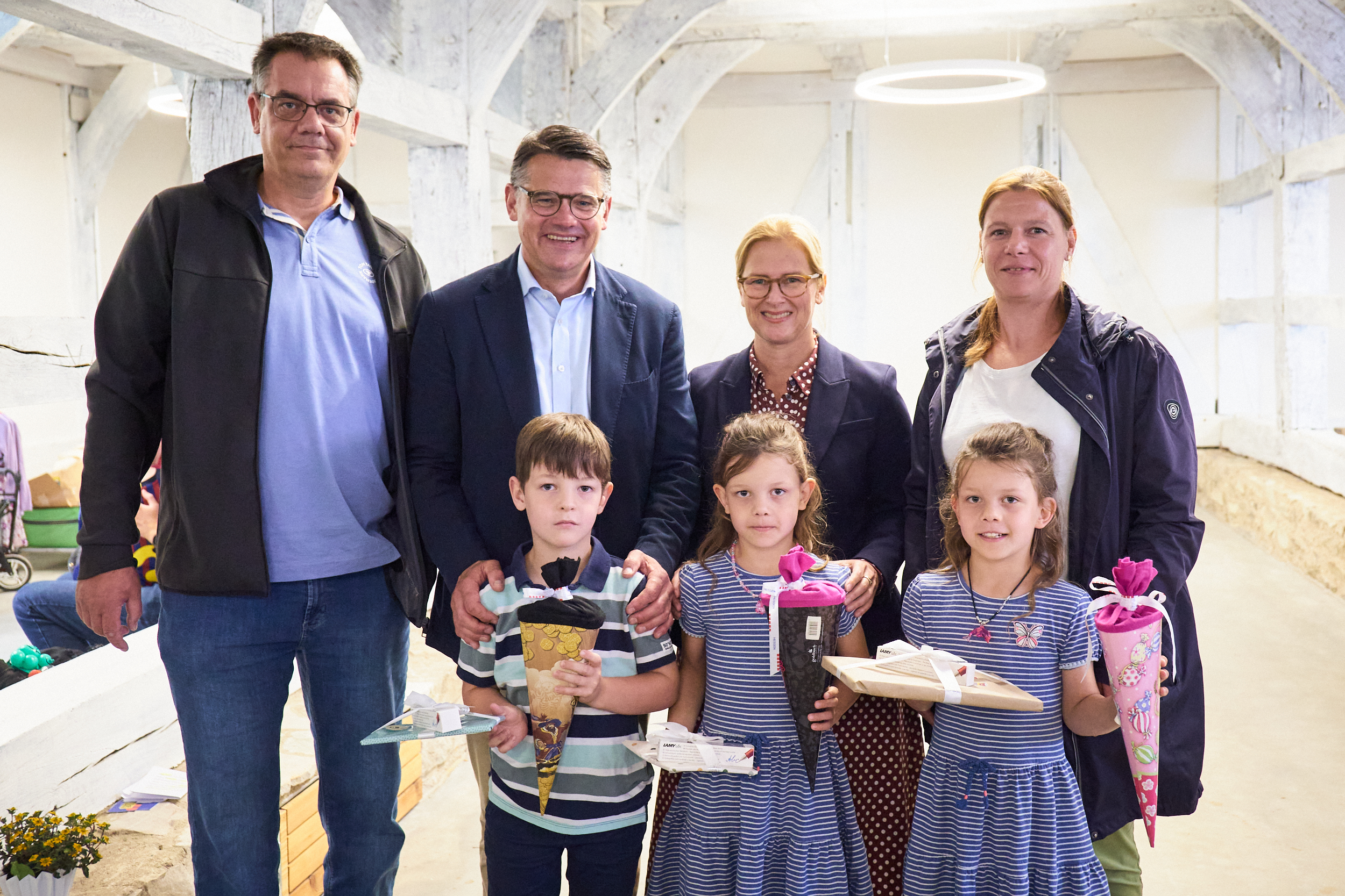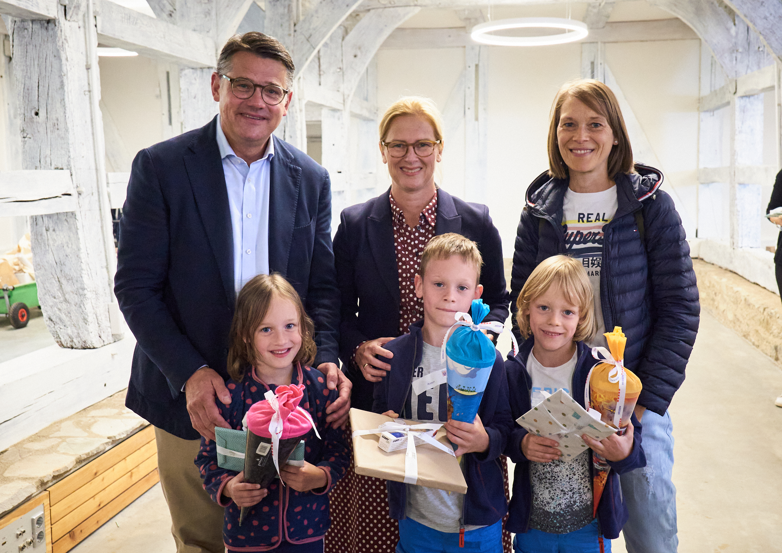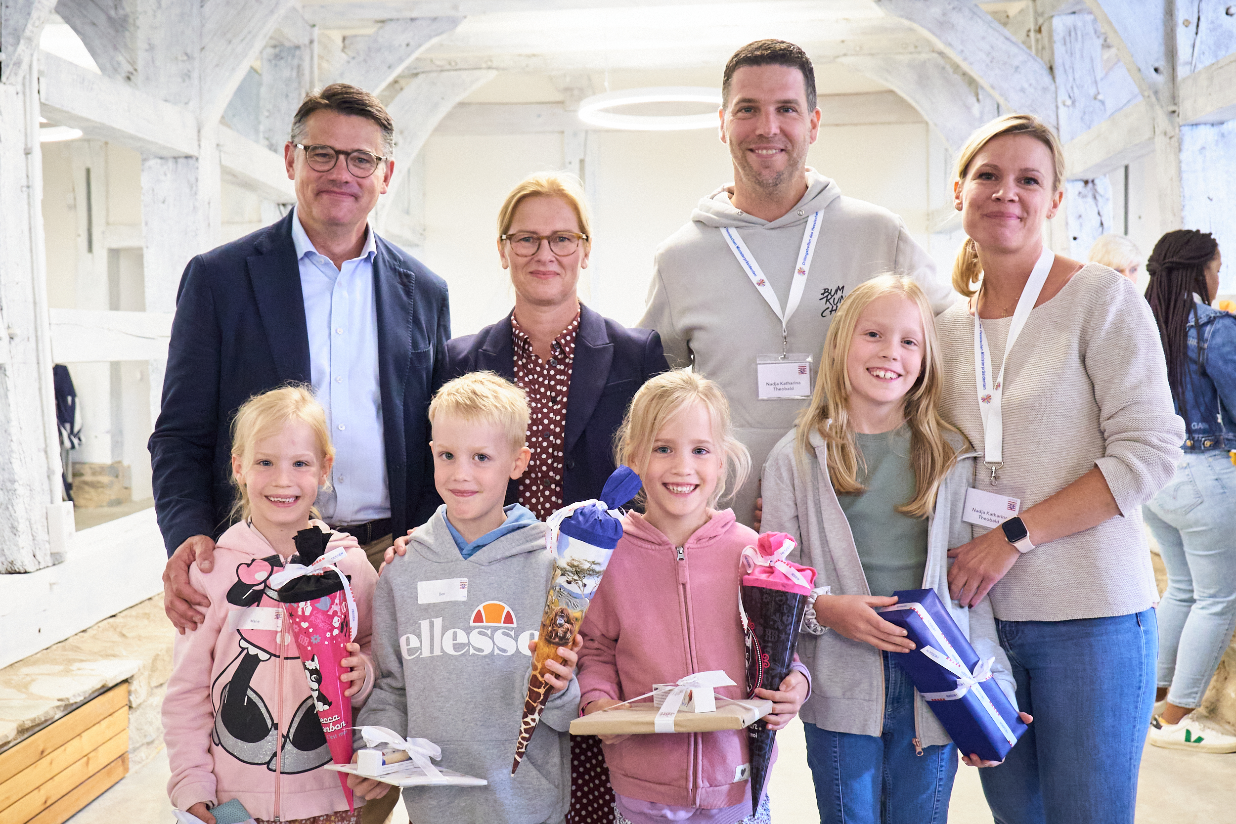 Ministerpräsident Boris Rhein mit Mehrlingen im Hessenpark in Neu-Anspach.