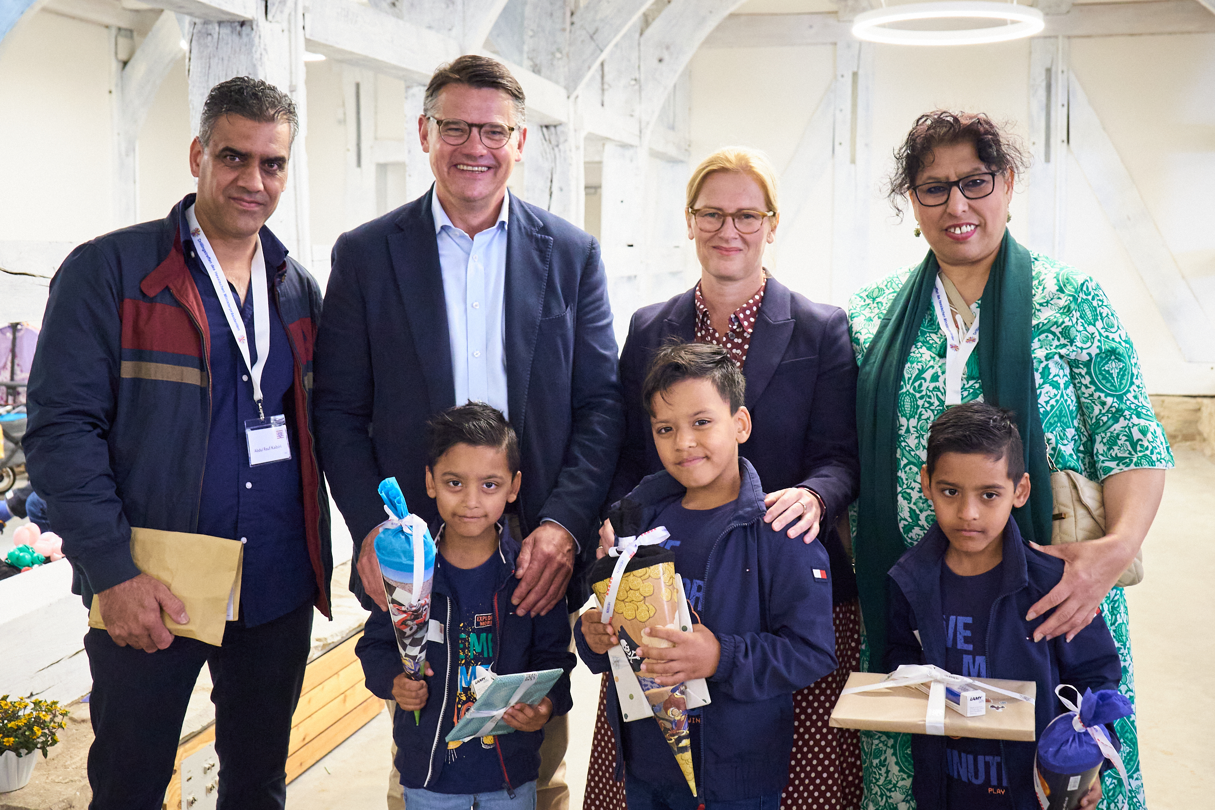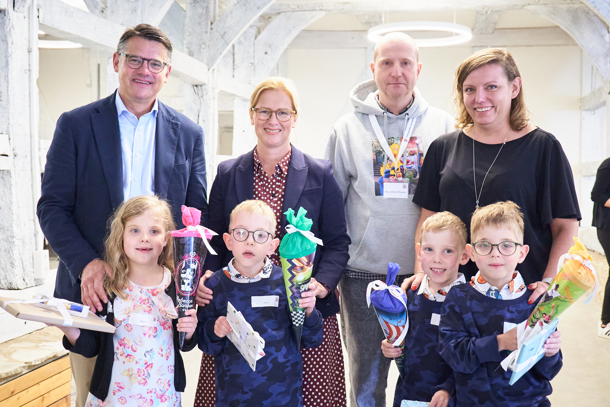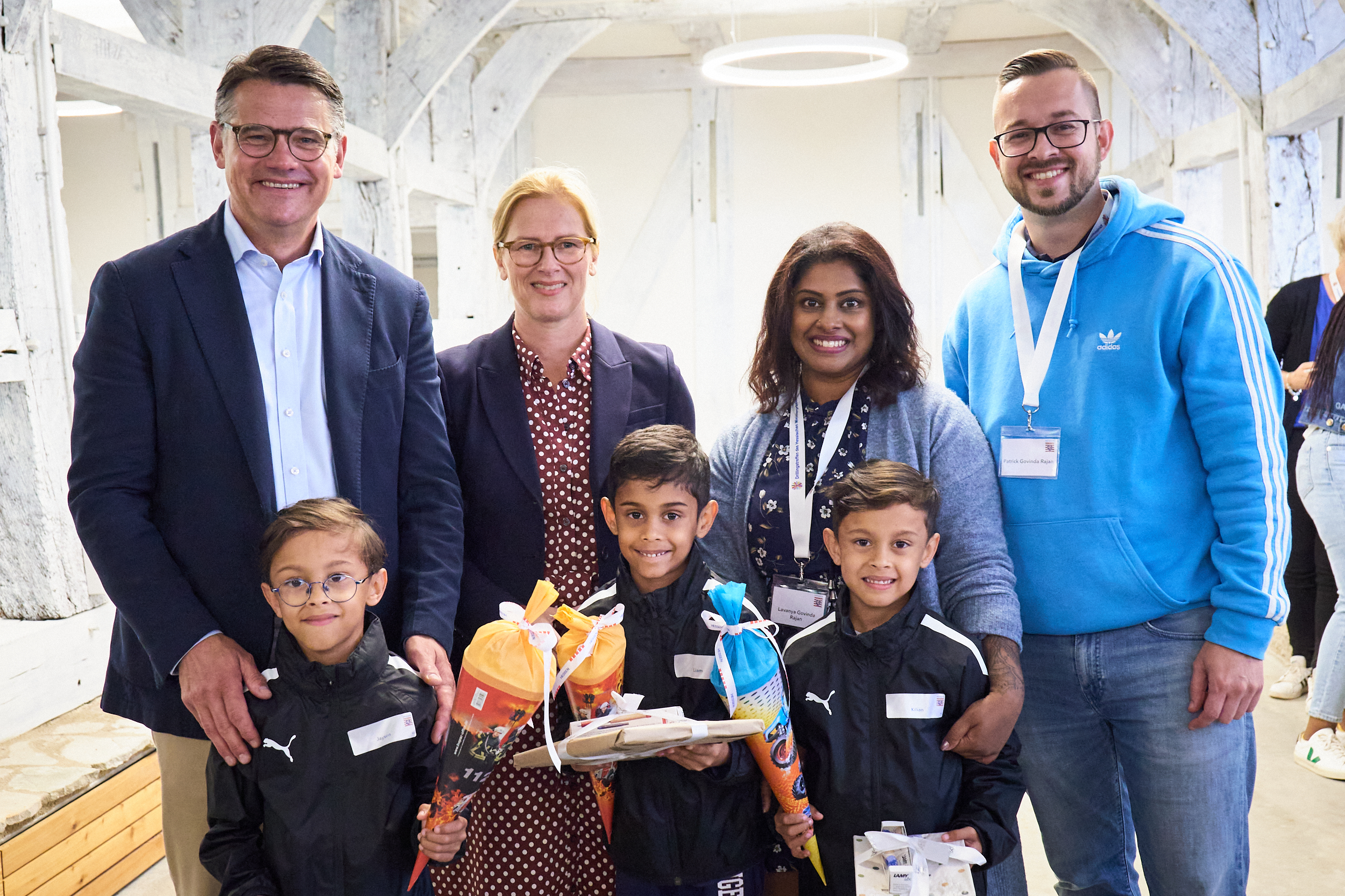 Ministerpräsident Boris Rhein mit Mehrlingen im Hessenpark in Neu-Anspach.