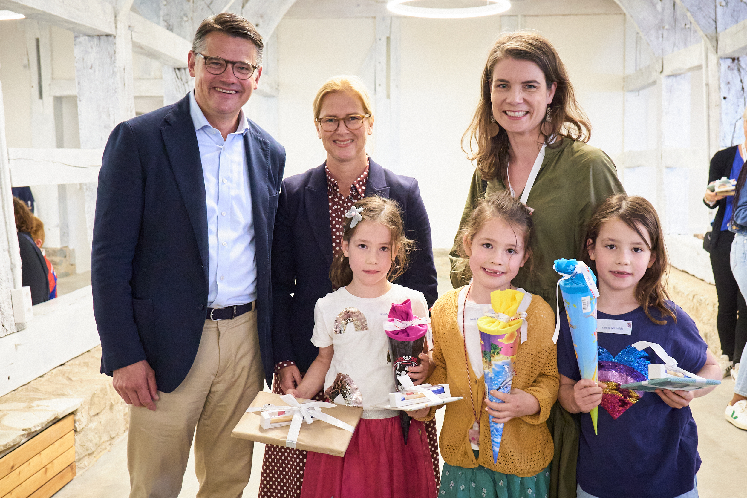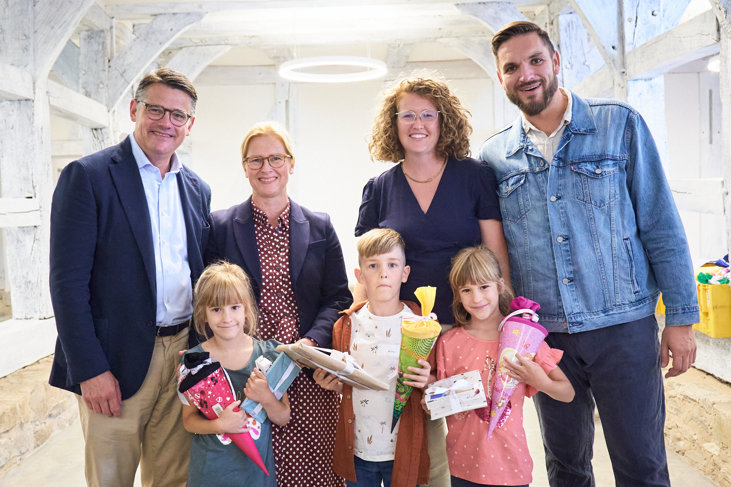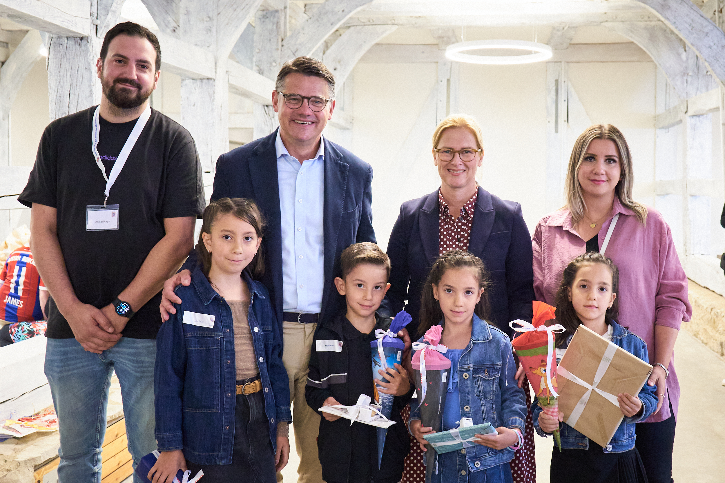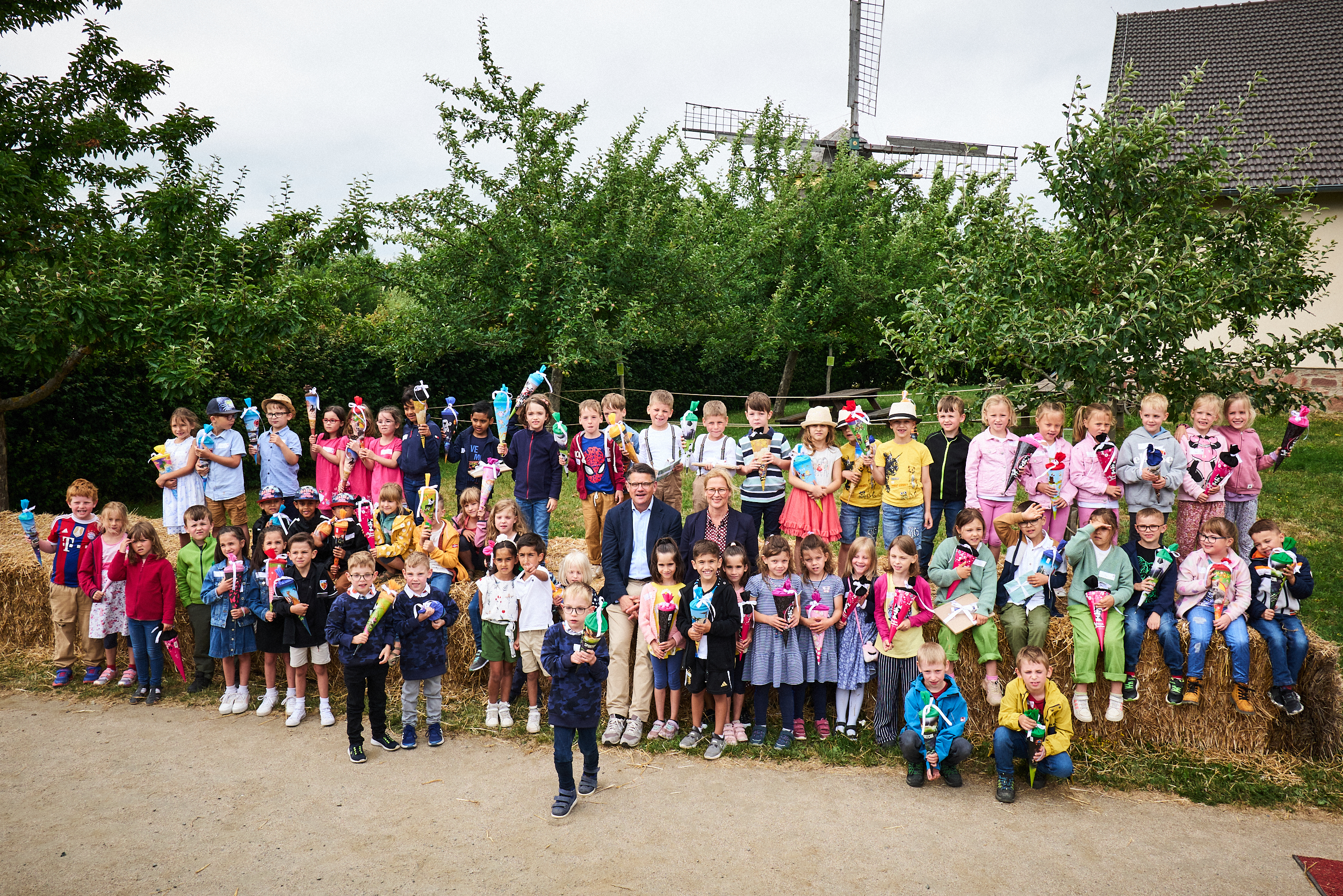 Ministerpräsident Boris Rhein mit Mehrlingen im Hessenpark in Neu-Anspach.