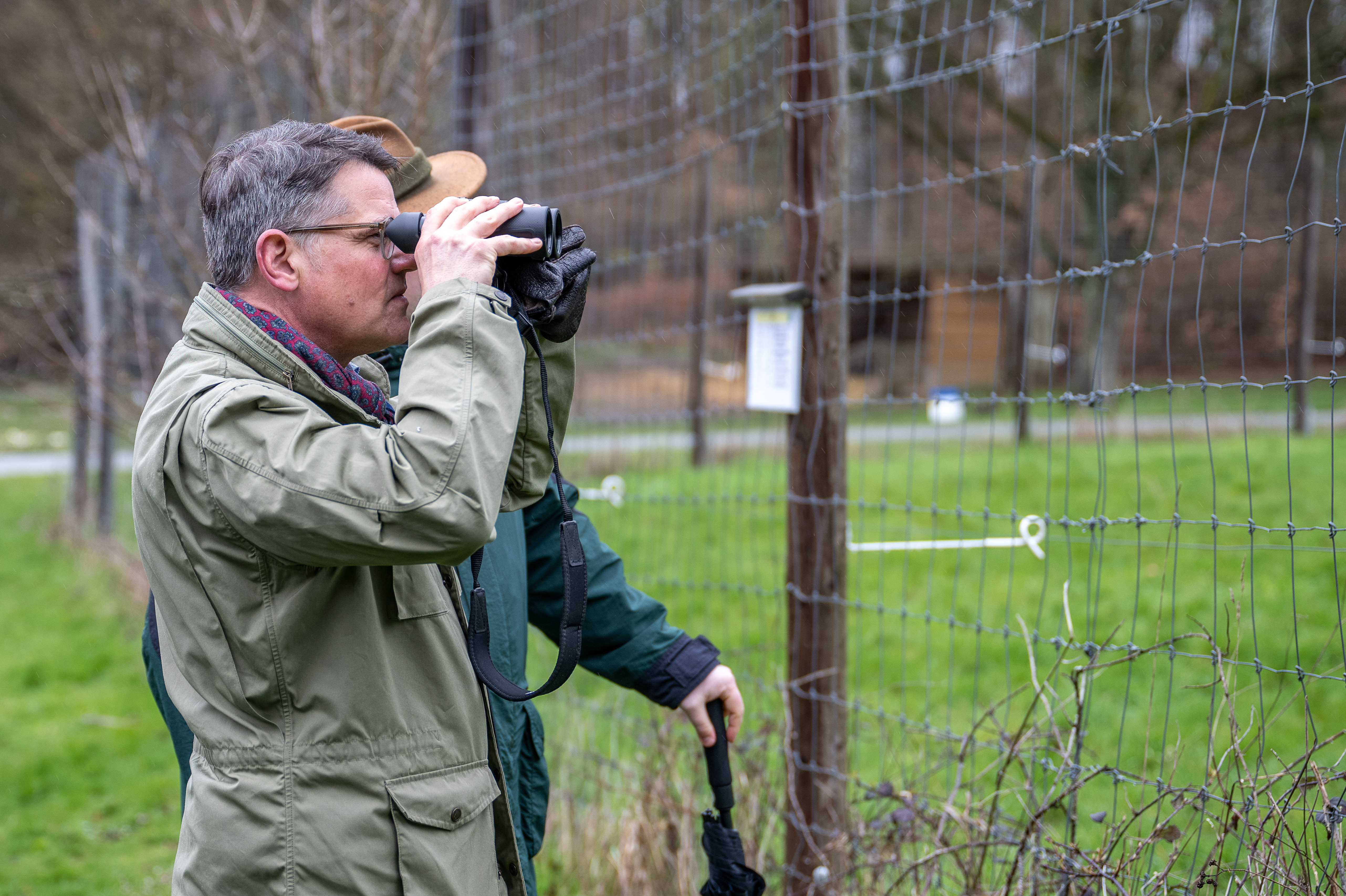 Ministerpräsident Rhein hat den Wildpark „Tiergarten Weilburg“ besucht, dort unter anderem die Patenschaft für den kürzlich geborenen Elch „Georg“ übernommen und sich im Rahmen des Familientags außerdem über das Angebot des Wildparks informiert, in dem insgesamt 21 verschiedene Tierarten wie Wisente, Bären, Steinböcke und Mufflons leben.