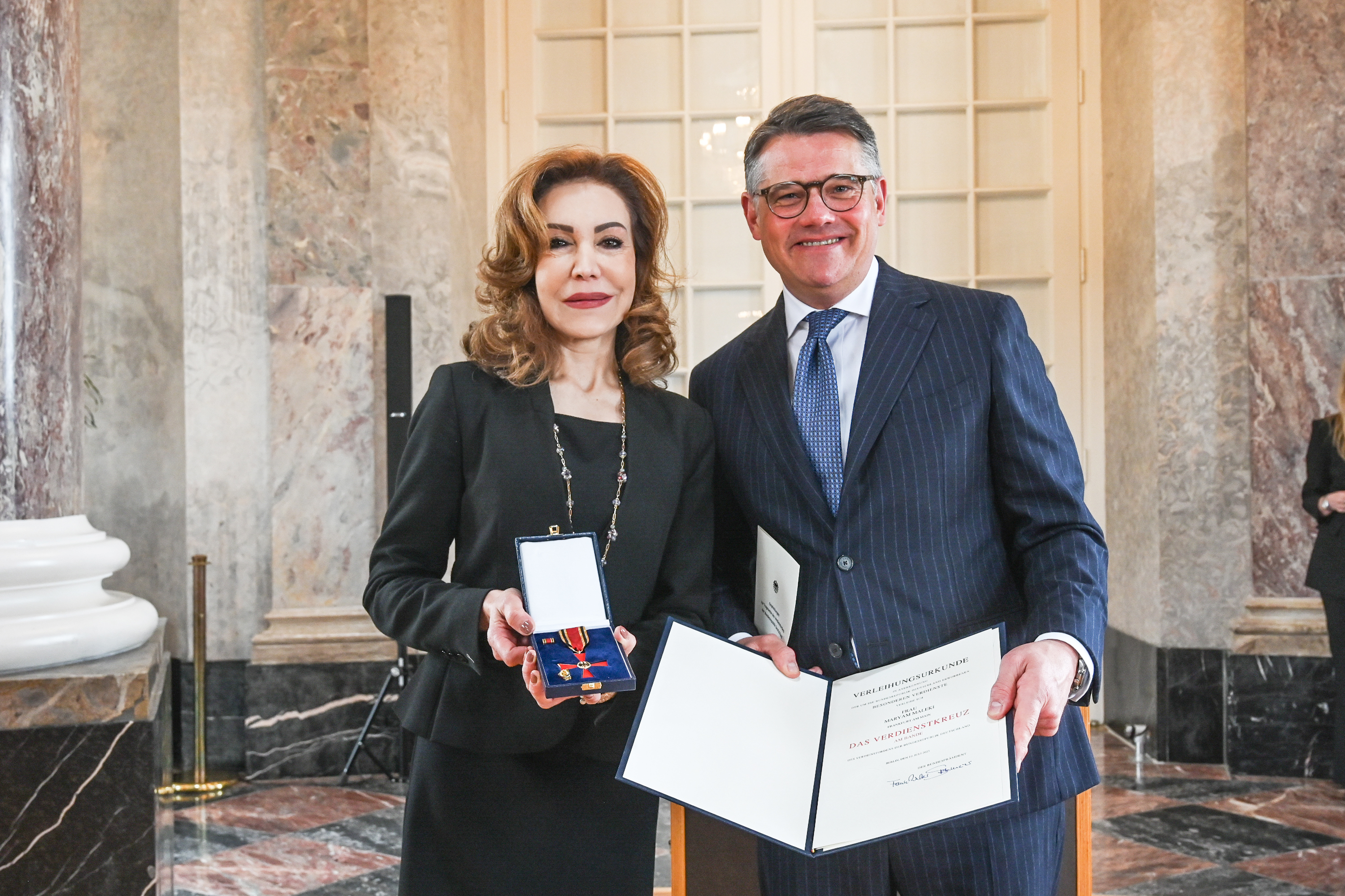 Ministerpräsident Boris Rhein überreichte Maryam Maleki den Verdienstorden der Bundesrepublik Deutschland.