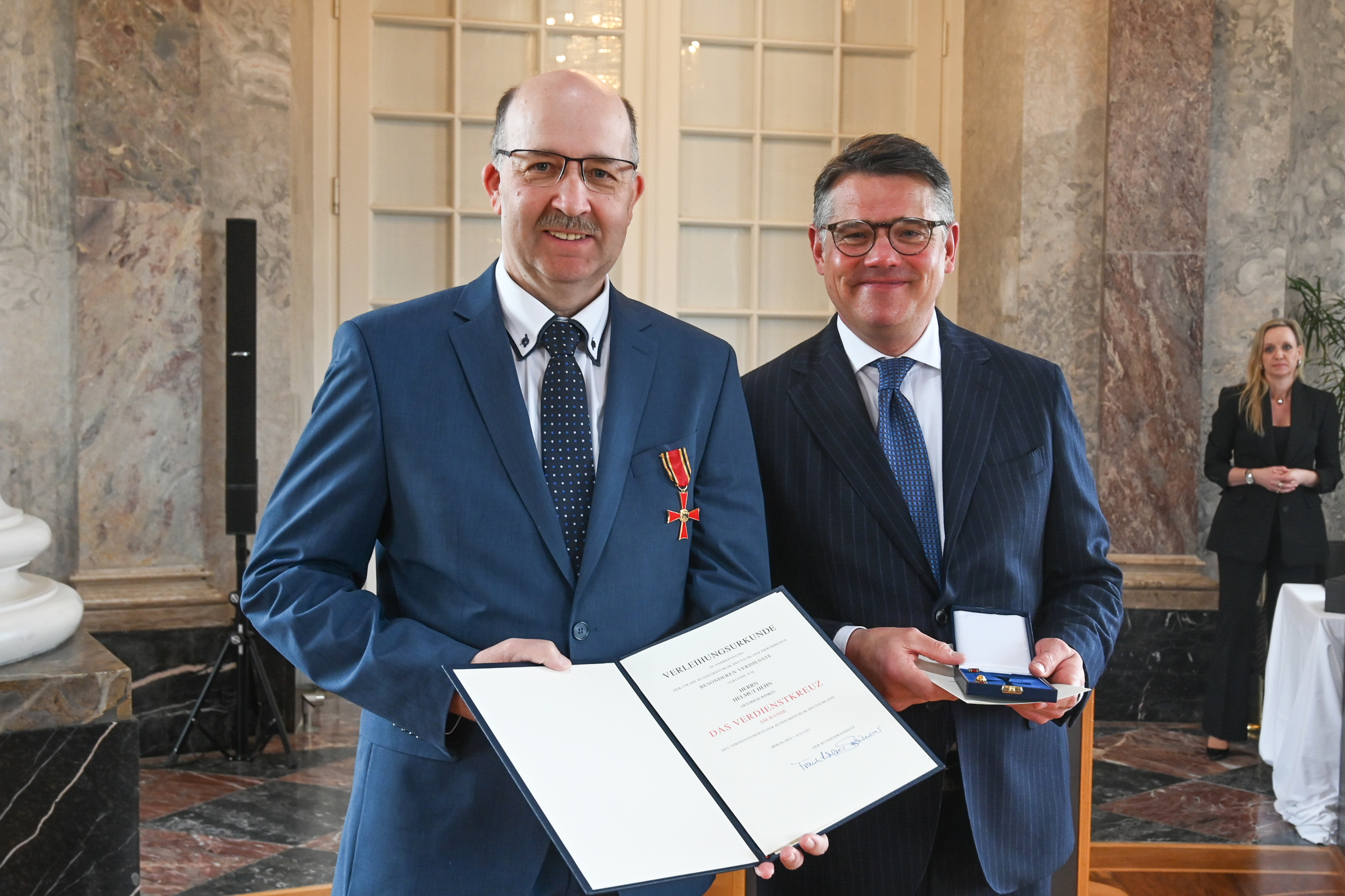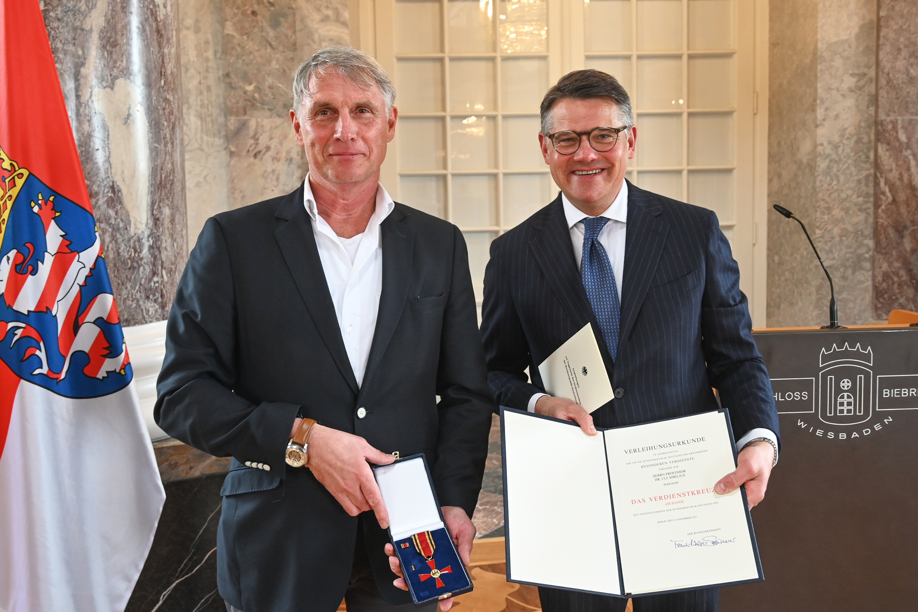 Ministerpräsident Boris Rhein überreichte Holger Weinert den Hessischen Verdienstorden.
