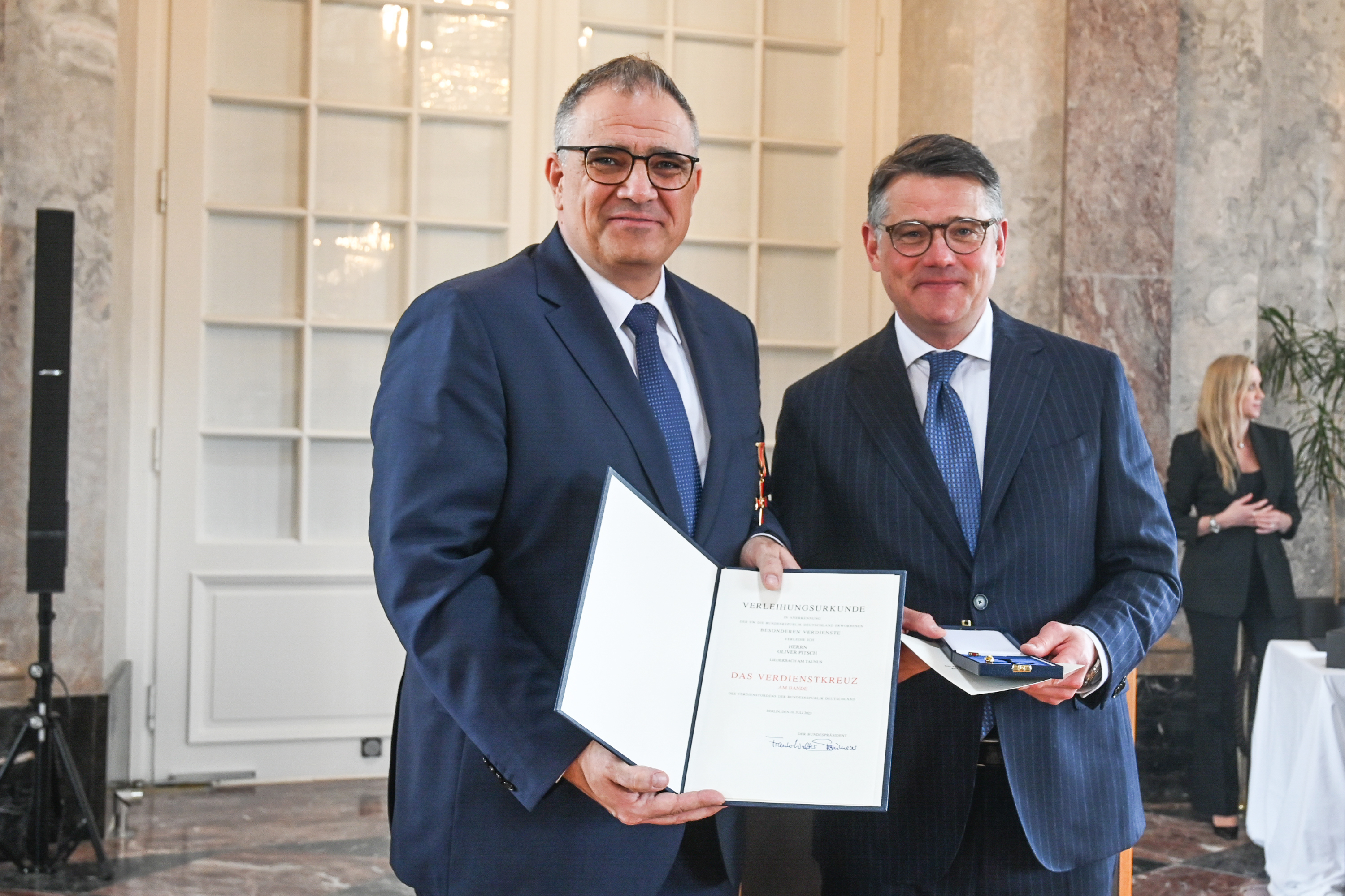 Ministerpräsident Boris Rhein überreichte Oliver Pitsch den Verdienstorden der Bun-desrepublik Deutschland.
