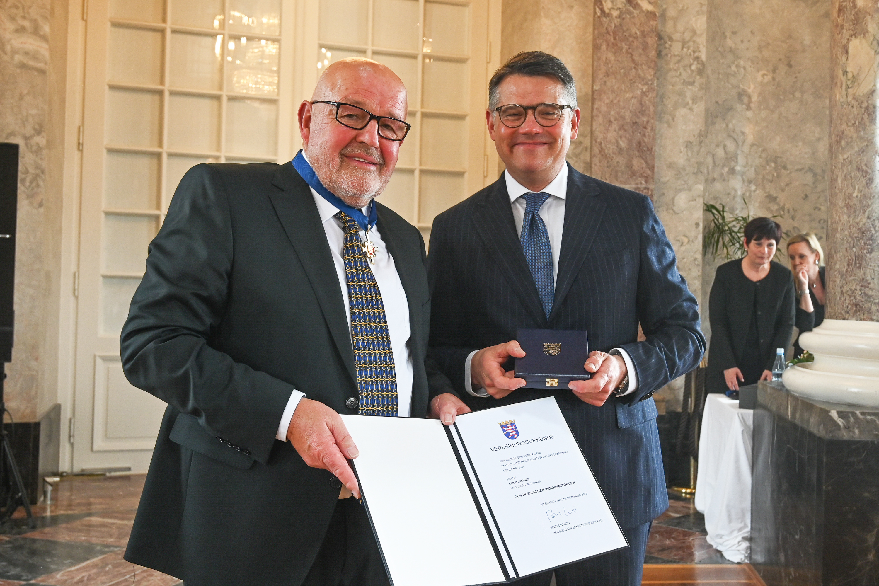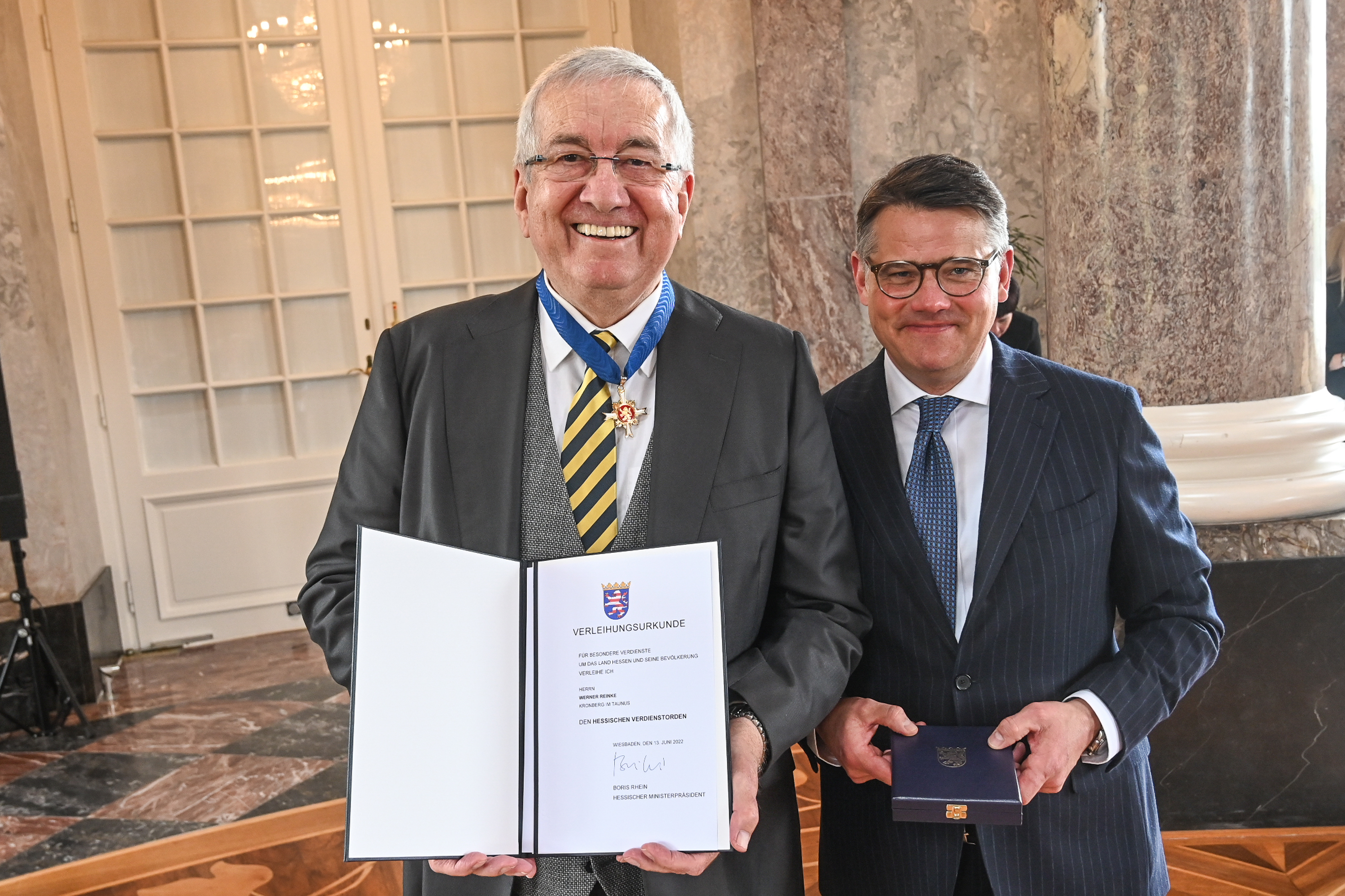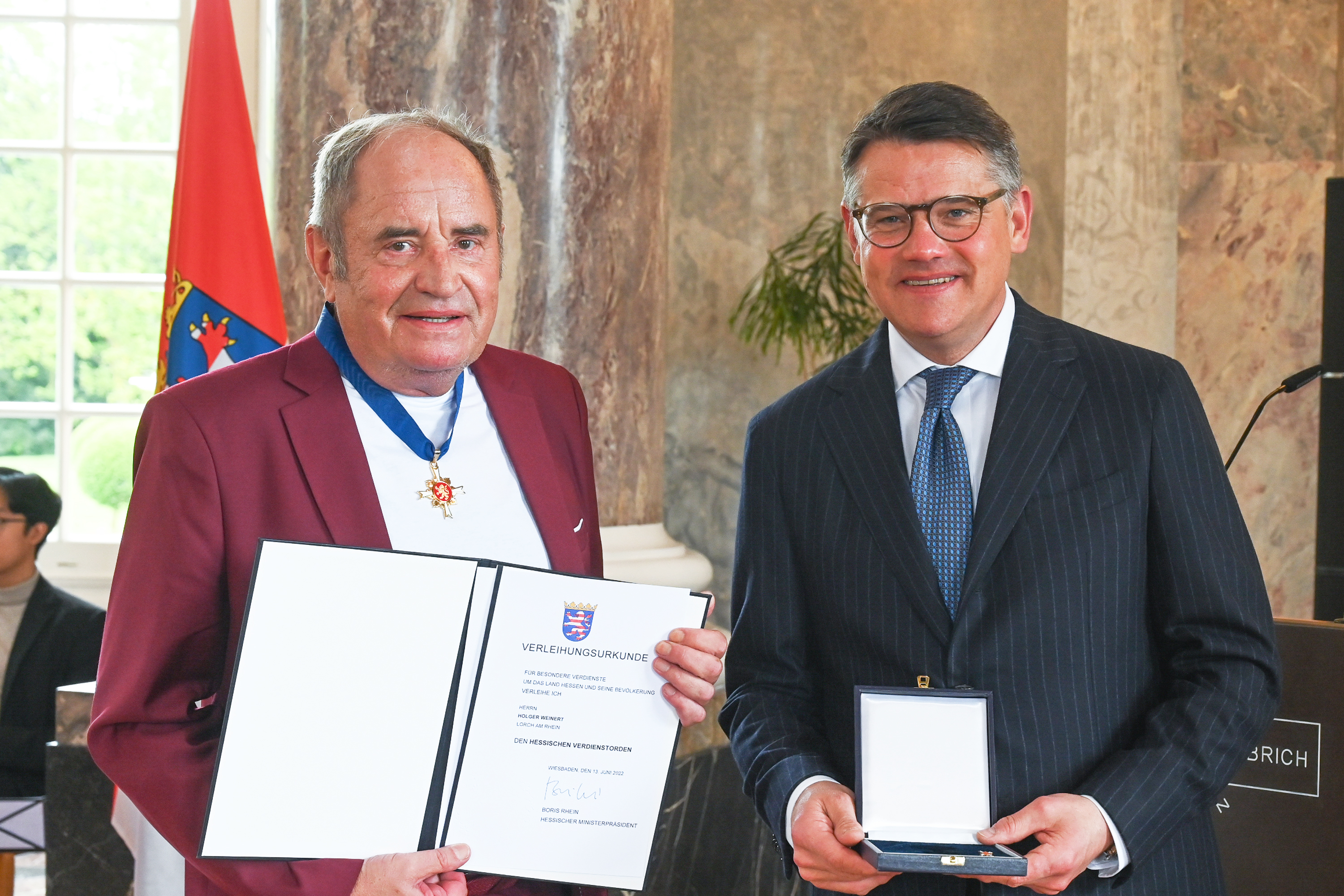 Ministerpräsident Boris Rhein überreichte Werner Reinke den Hessischen Verdienstorden