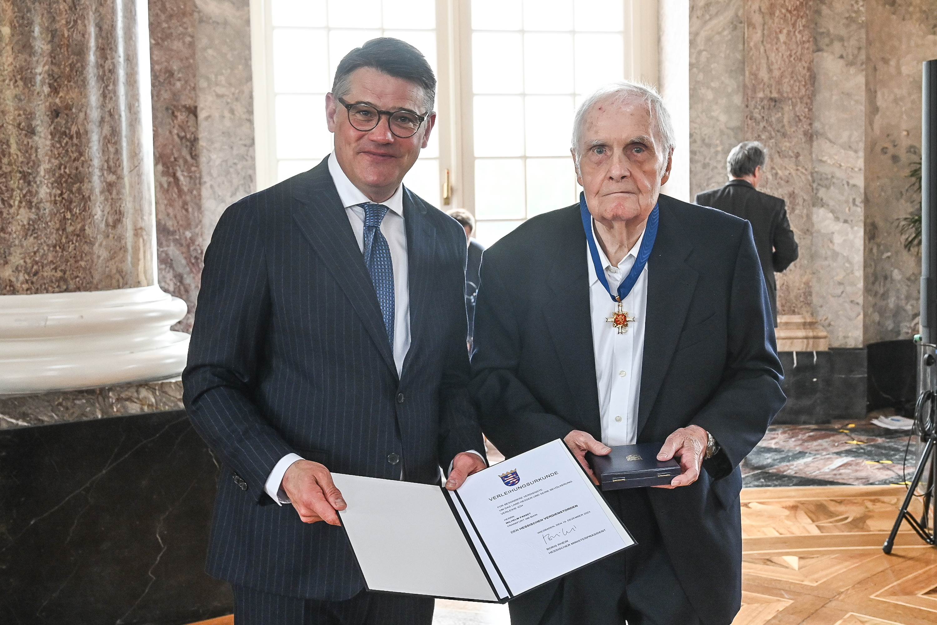 Ministerpräsident Boris Rhein überreichte Erich Lindner den Hessischen Verdienstorden.