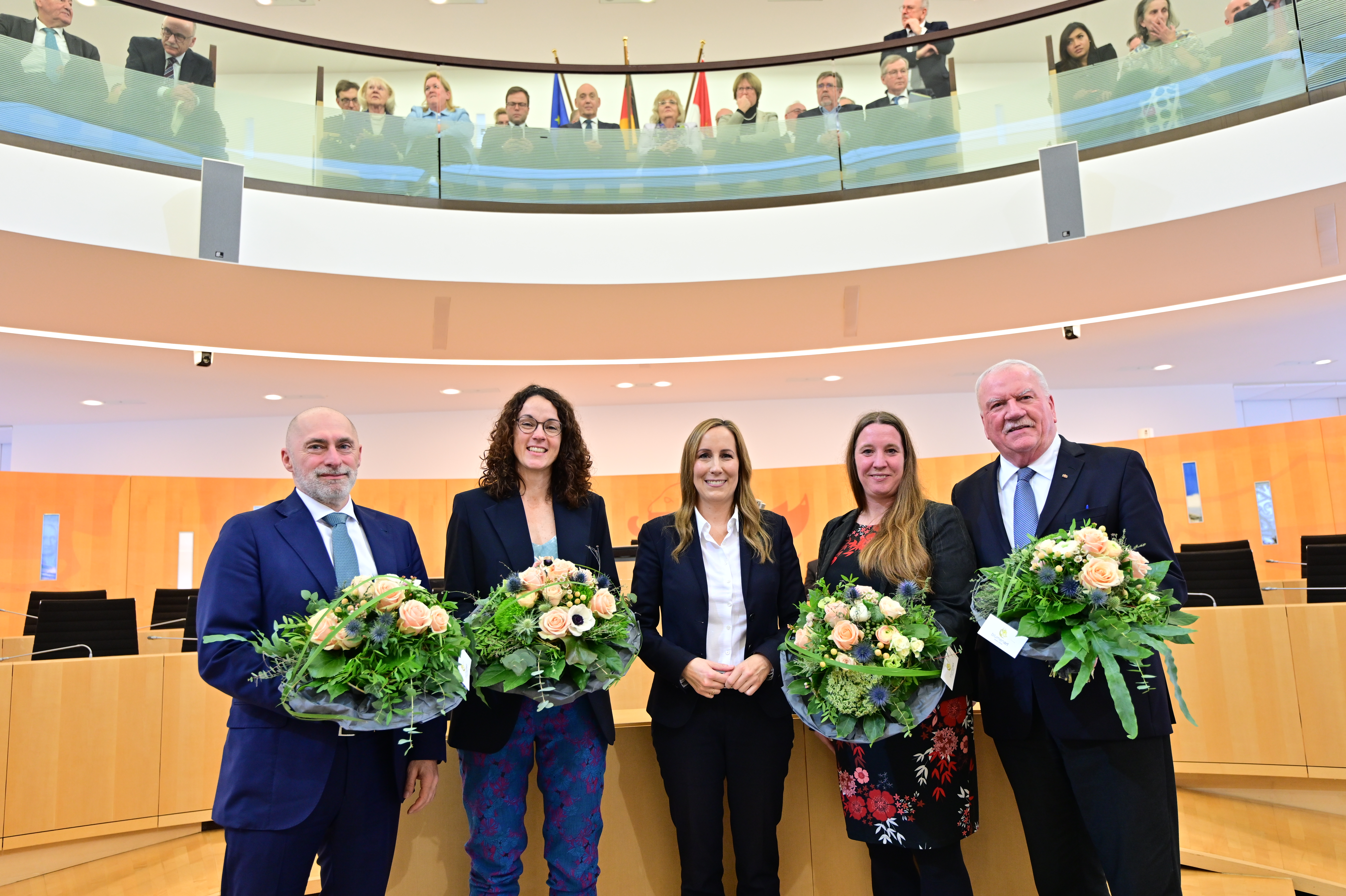 Präsidentin des neuen Landtags wird wie schon in der vorigen Legislaturperiode die Abgeordnete Astrid Wallmann (Mitte) sein. Sie wird vertreten von René Rock, Angela Dorn, Dr. Daniela Sommer und Frank Lortz (v.l.n.r.).