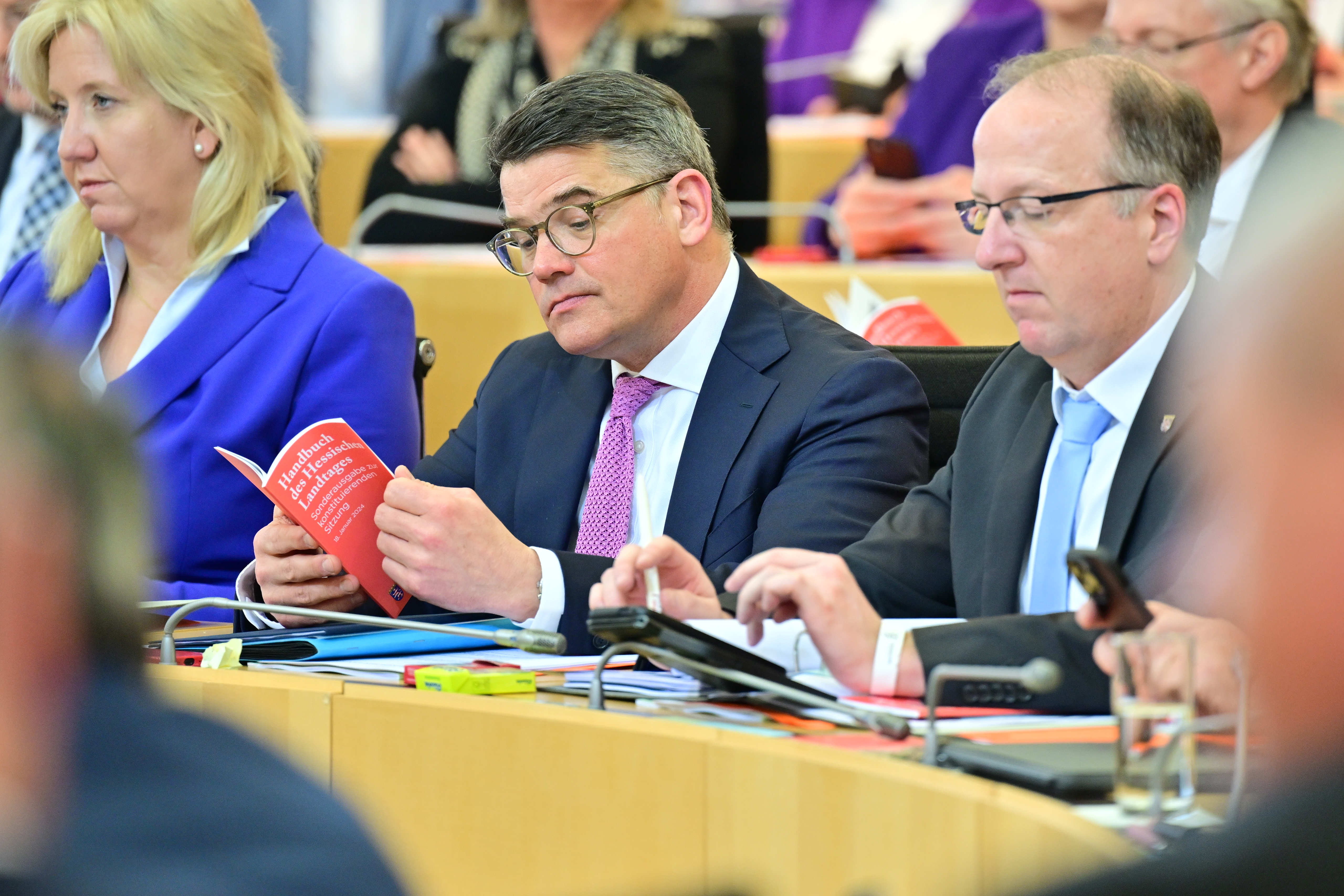 Boris Rhein wird von Landtagspräsidentin Astrid Wallmann als Hessischer Ministerpräsident vereidigt. 76 von 133 Abgeordneten des Landtags stimmten in geheimer Wahl für den CDU-Politiker.