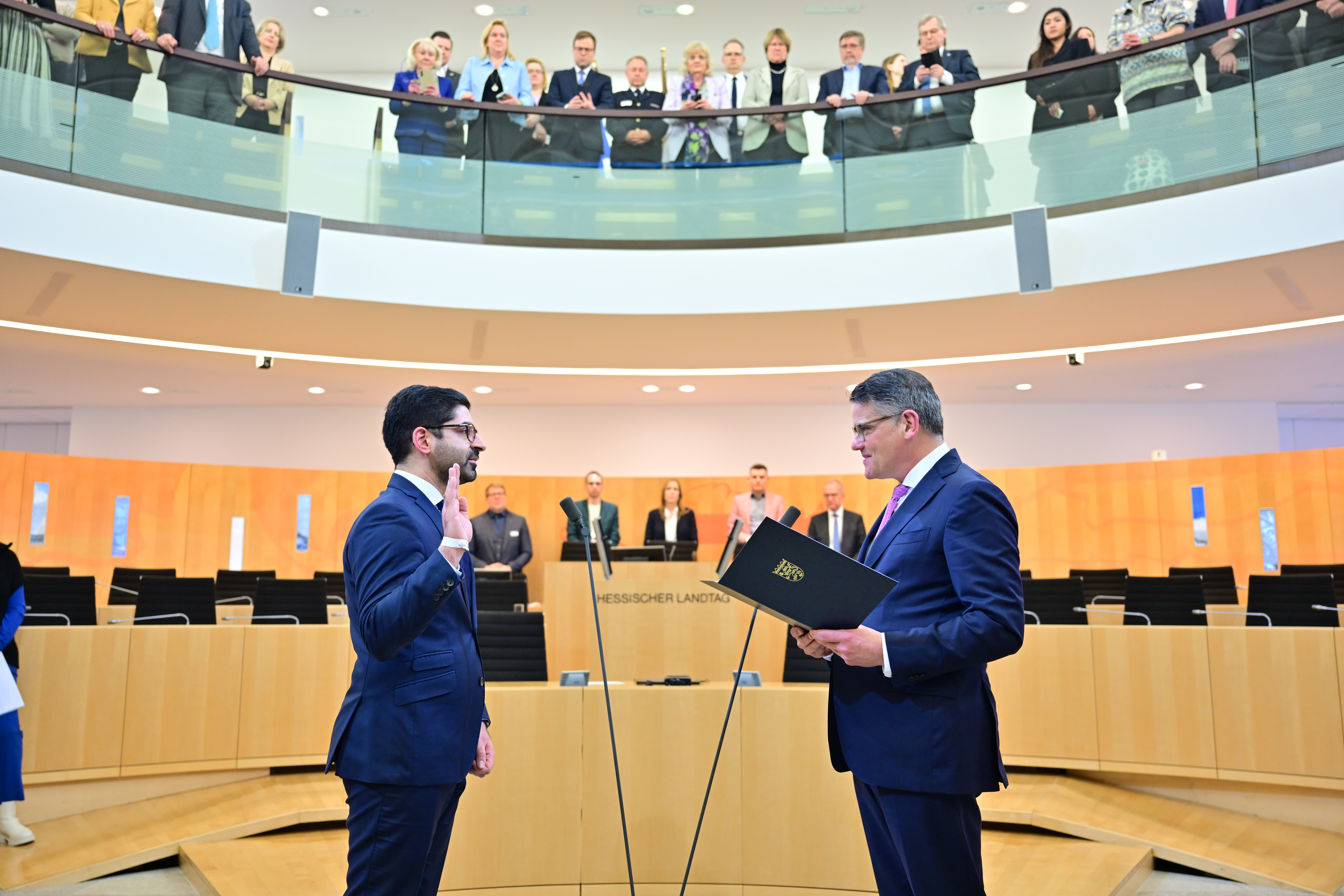 Ministerpräsident Boris Rhein vereidigt den stellvertretenden Regierungschef, Wirtschaftsminister Kaweh Mansoori.