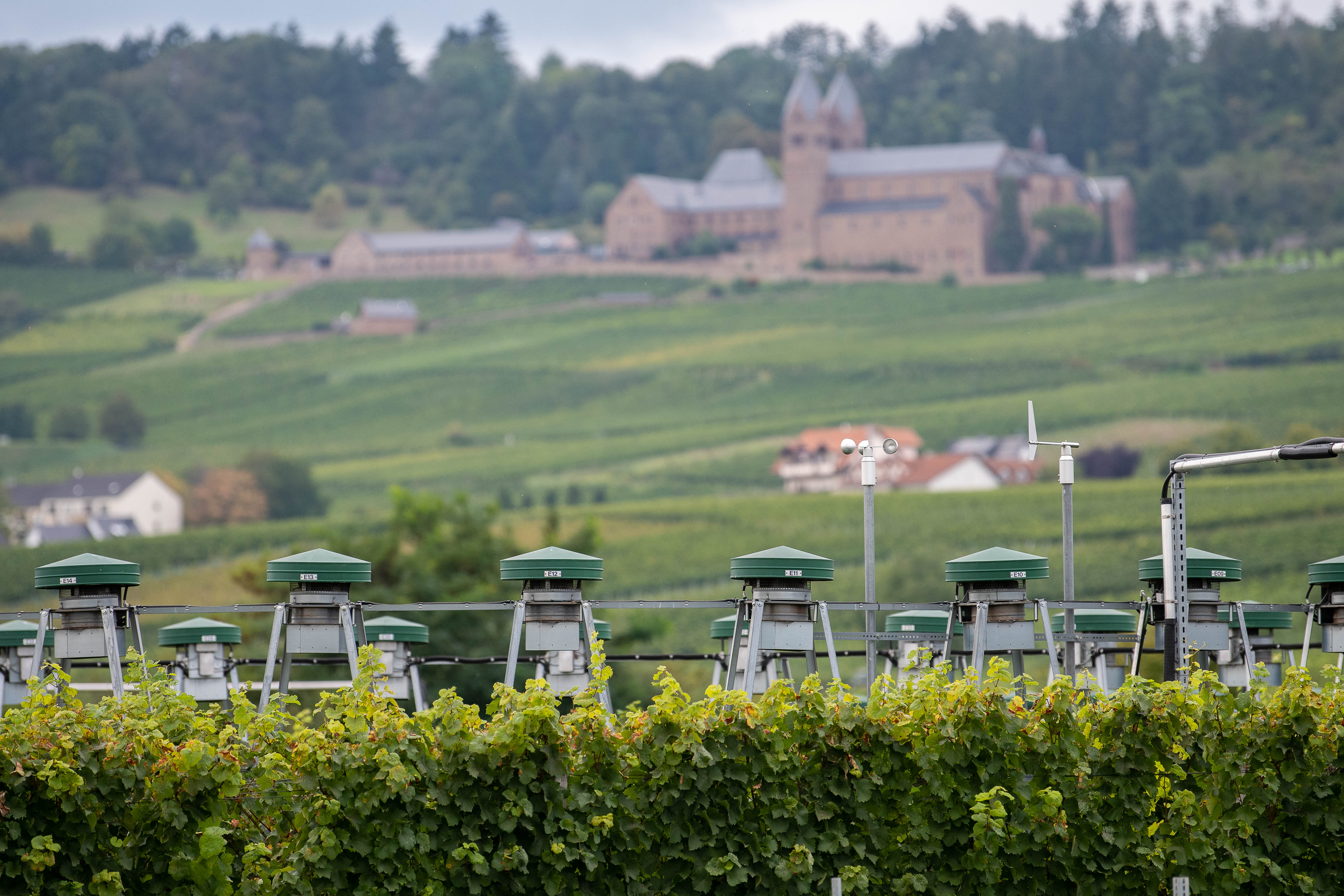 Regionalratspräsident Alain Rousset und Ministerpräsident Boris Rhein auf dem Weingut Château Pape Clément.