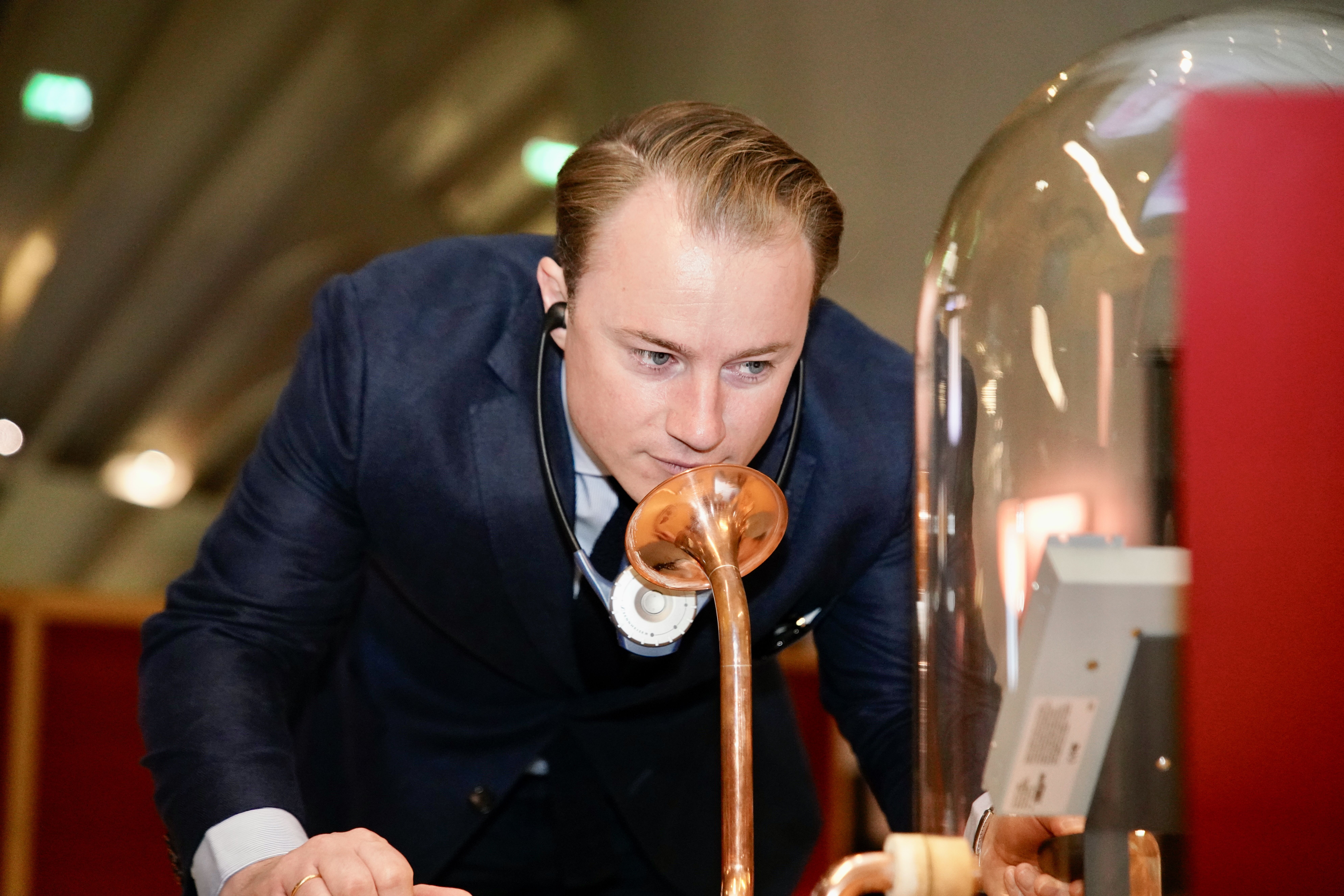Der Chef der Staatskanzlei, Staatssekretär Benedikt Kuhn, bei seiner Besichtigung der Cité du Vin: Eröffnet im Juni 2016 im Hafenviertel Bacalan, versteht sich die Cité du Vin in Bordeaux nicht als klassisches Museum, sondern als multimediales, immersives Erlebniszentrum.