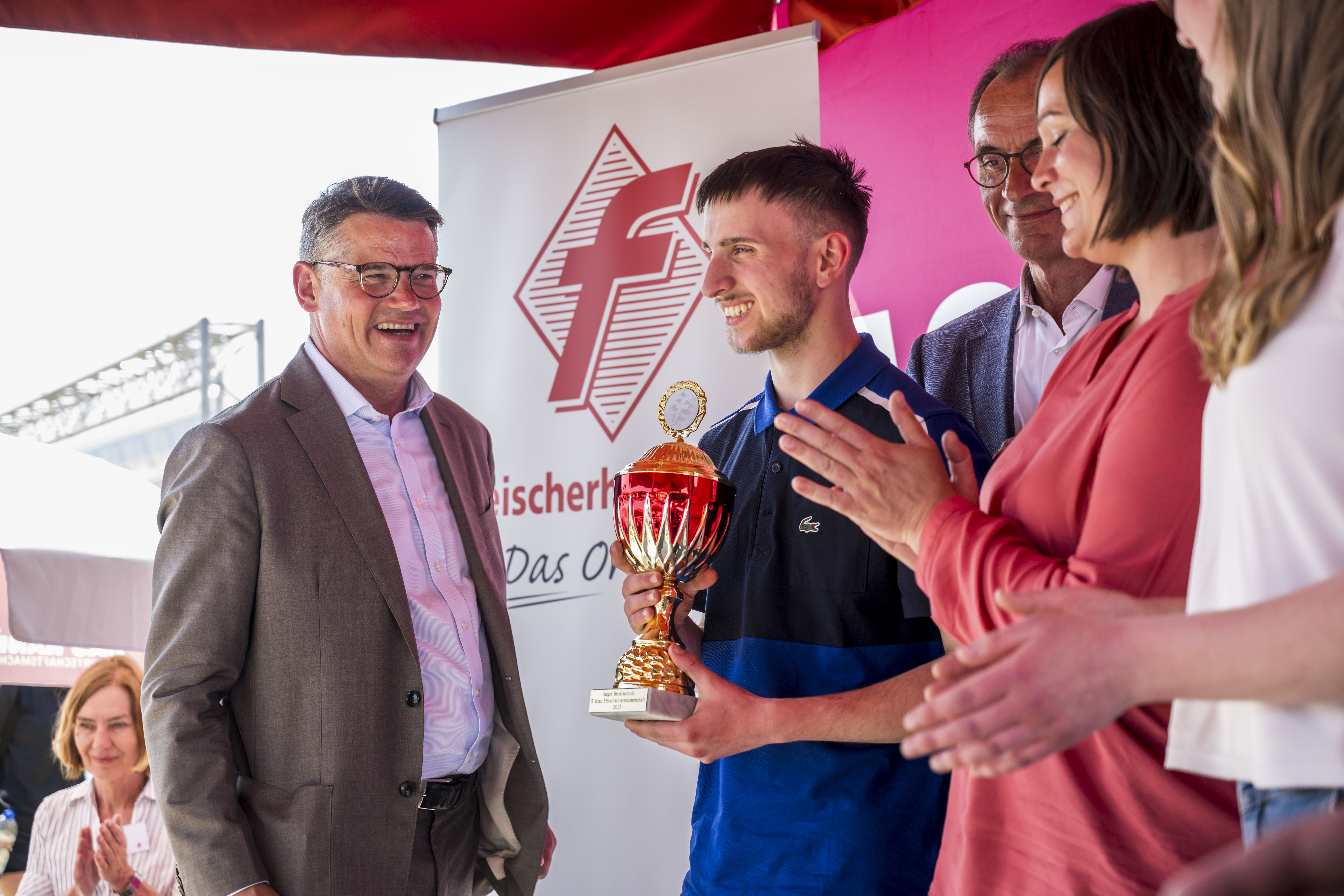 Traditionell geht jeder Hessentag mit einem Festzug als Höhepunkt und krönendem Abschluss zu Ende, so auch das diesjährige 60. Landesfest in Pfungstadt. Dabei hat Ministerpräsident Rhein die Festzugsgruppen begrüßt und Geschenke entgegengenommen. Am Ende des Zuges ist die Hessentagsfahne von der Stadt Pfungstadt an die Stadt Fritzlar, die Hessentagsstadt im nächsten Jahr, überreicht worden.