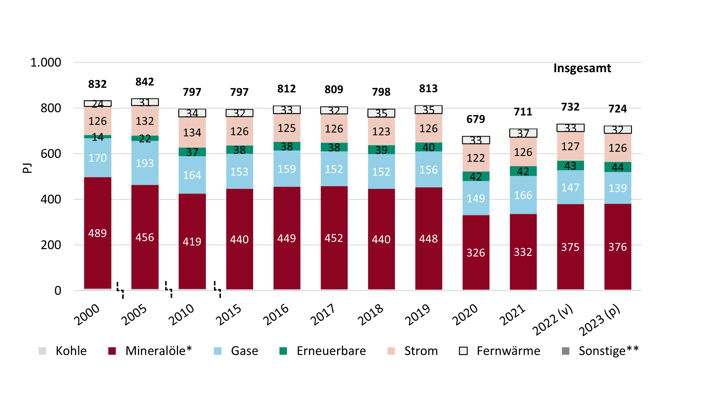 *) einschl. Flüssiggas **) sonstige hergestellte Gase, fossile Abfälle usw.